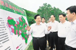 7月1日上午,自治区党委书记、自治区人大常委会主任郭声琨深入武鸣县甘圩镇实地调研集体林权制度改革情况。(刘 宇/摄)