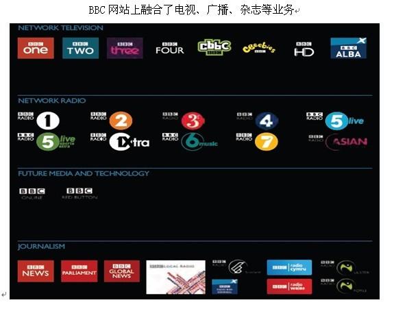 广电巨头英国广播公司(BBC)算得上多媒体融合变革中的翘楚。在数字广播和数字电视这两个领域,BBC占据着全球最新传播科技的制高点;在新媒体业务方面,BBC更是成为电视台模仿的对象。以下我们将从媒介融合理念、技术及内容三个方面分析BBC在网络时代是怎样自救的: