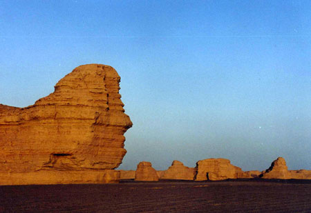 (雅丹,维吾尔语,意思是陡峭的小山,地质上的风蚀地貌)这山再也不长树木,它曾绿意葱葱,绿得像倾听那支熟悉的歌,岁月沉积在一层层的粘土中,把视野投向一片荒凉的迷蒙。大漠的风将它的心吹走,而大地却紧紧的抓住它那苍凉的身躯。