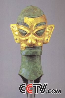 三星堆出土了四件金罩青铜人像,这是其中之一