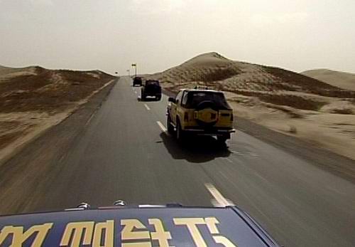 越野车队驶进大沙漠,一条横贯沙漠的公路是如此得好走,真是出乎我们意料。这条公路比高“等”级的快速路还要平顺,更重要的是一马平川,路上几乎看不见其他车辆。越野车犹如撒了欢的野马一路狂奔,两边起伏蜿蜒的沙丘在光线的照射下宛如优美的人体曲线,令人想入非非。