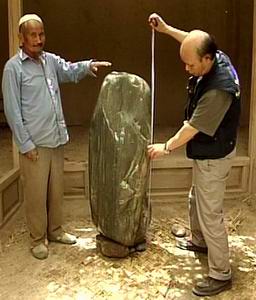 村里的老乡告诉我们,他们在山里发现这块玉之后,扎了一个木排,下面放了八个汽车轮胎,顺着山水一共费时二十五天才运到村里。