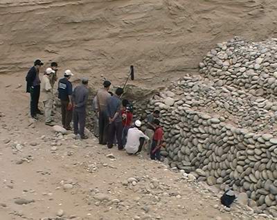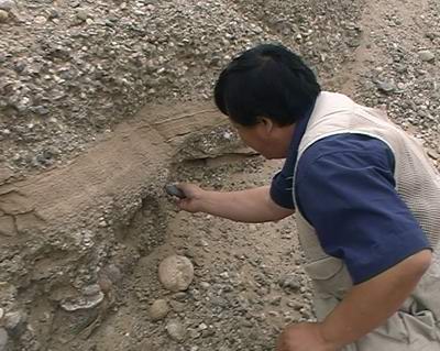 我们在白玉河看到,采玉人在河上游筑了几道堤坝。主干道现在已经断流。干枯的河床面目皆非。和田是有名的“黄风县”,一年四季都有沙尘暴。我们在河床里考察时,刚刚还晴空万里,不一会儿沙尘暴骤起,遮天蔽日,刮得对面几米就见不到人。据当地气象预报记载,这种天气在一千年以前就是如此,真不知道采玉人怎么才能从浑浊的河水中找到宝玉石。