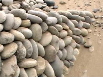 大大小小的鹅卵石被人工一层层码放得整整齐齐 |