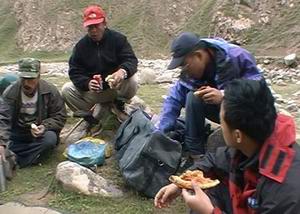 在出发之前,所有参加考察的专家和记者曾在海军医院高压氧舱进行过体检。在高压氧舱里模拟海拔高度,当模拟海拔达到四千米时候,我们其中的两个记者就已经支持不住了。如今我们所要攀登的高峰,也就是玉石的一个源头,最低处的海拔也有五千六百多米,恐怕到达那里的也不会是全体人员。
