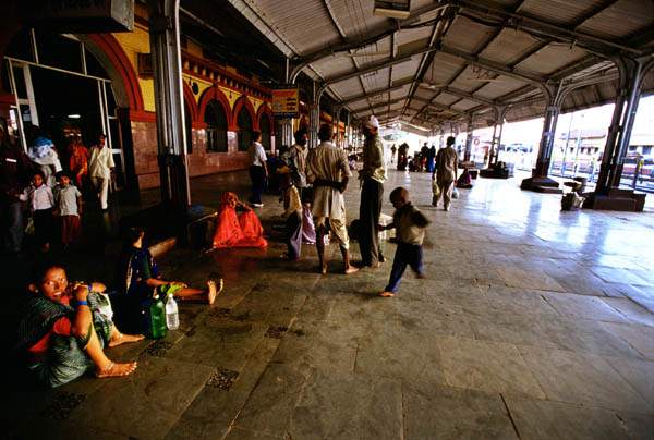 印度火车电气化程度很高,在火车站里,没有我们惯常见到的人潮汹涌的景象,倒是站外的人较多些,又以摆摊档的为多。接受印度的人多,以为搭车的人也会多,但这样的机会较少,只在德里和瓦那纳西的售票大厅坐满人,但不是经常性的。基本上没有候车室,人们只在车内的大厅或是月台上等候,也不是特别的人多,且车内一般设置有旅客休息室,基本上是购买二等以上的人进去,空间也并不大,顶多能容纳二、三十人左右,或许买得起二等以上的人多是上等人吧,所以进去休息的多数为外国人,印度人较少,一眼看去还是受过教育的。