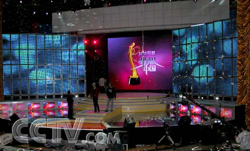 和《梦想中国》一直保持高调宣传有所不同的是,《梦想中国》剧组对这个“成就中国平民偶像”的大型舞台一直保持低调、秘而不宣,业界对一向有“大手笔”的央视多有猜测、多有期盼。就在直播前夕,《梦想中国》的舞台在小范围内向媒体正式开放,几乎让所有到场的记者都暗暗吃惊——《梦想中国》的舞台在央视第一次实现了全数字化电脑操控,舞台宽大简约而时尚,而在全球第一次亮相的两块共80平方米的“彩幕”分别树立在主演区的两侧,屏幕上不仅画面鲜艳亮泽,而且呈透明状,背景光效透过“彩幕”,制造出一种空透的梦幻感。这个“彩幕”是在普通LED显示屏基础上新近研发出来的,我国拥有自主知识产权,为了《梦想中国》节目专门赶制出来。引进“彩幕”,是《梦想中国》舞台总设计陈岩的“杰作”,这位电视舞台界的“大腕”,连续多次担任《春节联欢晚会》的舞美设计,而他的很多时尚、前卫的设计思想这一次都在《梦想中国》得到体现。央视投入巨大精力打造了《梦想中国》,也打造了一个如梦如幻的“梦想舞台”,可谓给予这些普通平民选手以相当高的礼遇。
