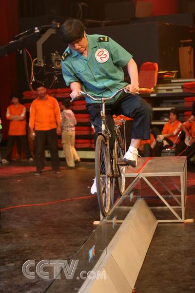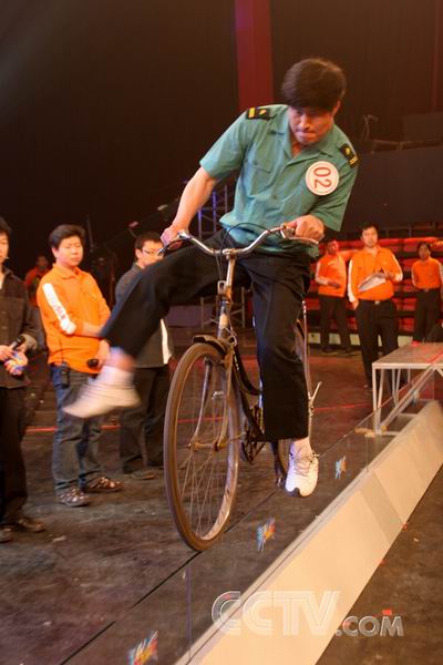 中国是个自行车王国,会骑车人比比皆是,可今天江苏的葛凤才让大家开了眼界,骑车也能玩出新花样。葛凤才是一名普通的投递员,二十几年骑车送邮件的经历让他练就了高难度骑车的好本领。今天,他将蹬着一辆普普通通的自行车,骑过一块仅有1厘米厚,62厘米高,10米长的玻璃,难度可想而知。在经历了2次失败后,不轻易放弃的葛凤才重装上阵,在第三次挑战中不负众望,挑战成功,最终获得了今天的挑战英雄。