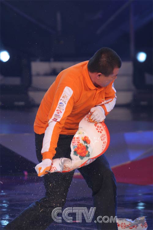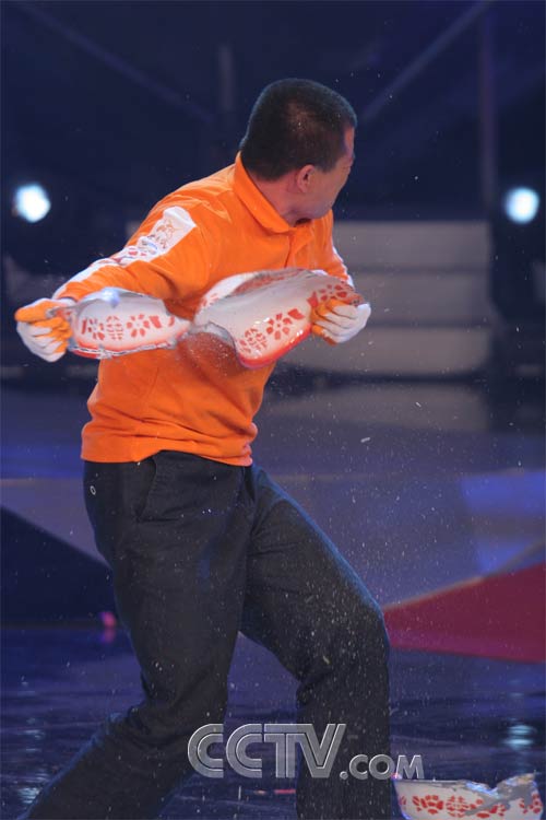 以前小的时候看过一部动画片名字叫《布雷斯警长》,里面的英雄布雷斯警长就有四种神奇的魔力,他有“狼的耳朵、豹的速度、鹰的眼睛、熊的力量”,总是让人羡慕不已。今天晚上,在中央电视台1号演播厅就有一位拥有布雷斯警长般的一种神奇魔力——“熊的力量”,他就是程京喜。他能把坚硬的脸盆撕成粉碎,瓷粉洒落如白雪,现场的爆发力发挥到了极至。