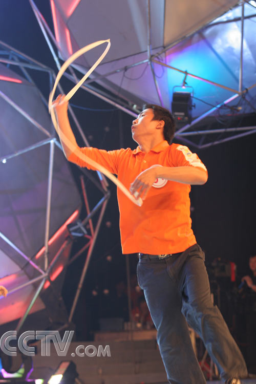 (央视国际记者王云云、杨育权报道)想象一下,柔和的灯光、绚丽的舞台,一位美少女,手执长长的彩带,犹如非洲大草原上的羚羊一样轻轻跳跃,落下莲花般的小蹄子,五色彩带舞将起来,仿佛天边彩虹随风起舞,遥远、瑰丽,却不可触摸。