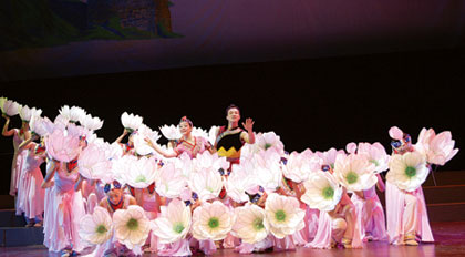 《畲家谣》还有一大特点就是绝大多数演员都是业余的,或是来自学校的学生,或是来自当地各乡镇群众艺术馆的文化骨干。“我们的编导也都是搞群众艺术出身的‘业余’人士,我们了解群众、了解群众艺术,也就更能让舞台上的表演贴近群众、贴近生活。”李平认为,让群众参加演出,也能有利于《畲家谣》在当地保留下去。“演出作为他们的一个教学项目,这样学生们可以一茬接一茬地演下去。我们的节目不仅仅是为了参加会演,更重要的是希望通过这个节目,把畲族的文化、把畲族人的精神在群众中传承下去。”(记者 张绿夏)