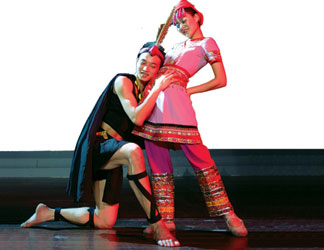 李平说:“作为参加全国少数民族文艺会演的剧目,《畲家谣》着重突出了浙江畲族的地域特点。瓯江流域的畲族文化有我们自己的特点——与江密不可分。”沿江放排,是这里的畲族人特有的生活内容,瓯江上那逆流拔滩的排工,是畲家人顽强生命力的象征。