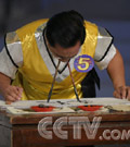 挑战五:倒立书法 挑战者:(新加坡)陈弘洲