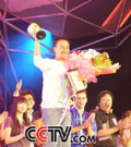 德国选手斯文"凶猛"出场 群英会挑战快速收雨伞