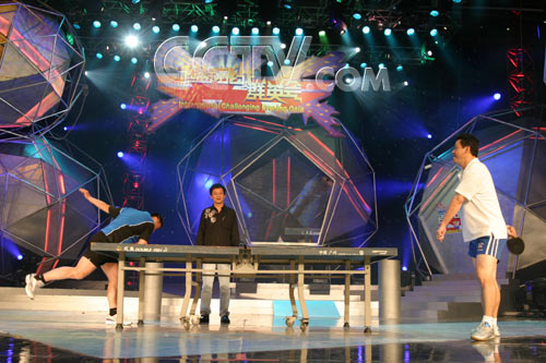 | 世界冠军陈新华、郭跃华为大家表演球技 |