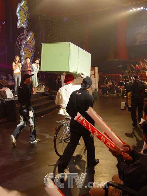这个项目对于一个成年人来说无疑是不可思议的,更别谈金大叔这个老人了。主持人朱军还随手拎了一下煤气罐以验证道具的真实性。只见大叔把他那标志性的小红帽子带上,不慌不忙的把32斤的煤气罐放在头顶,一只手扶住罐子,另一之手控制着自行车的方向,在目的地处转个弯后,把罐子拿下来轻轻放在地上。而最惊心的莫过于头顶着85斤的冰箱骑自行车了。我不禁为大叔担心。
