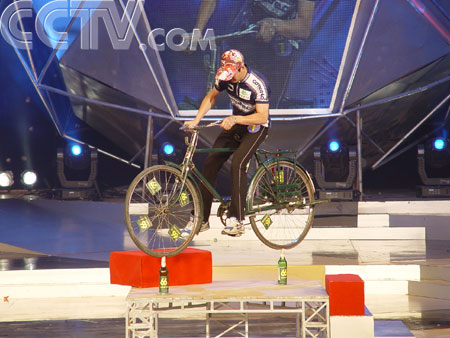 挑战一:啤酒瓶上立自行车