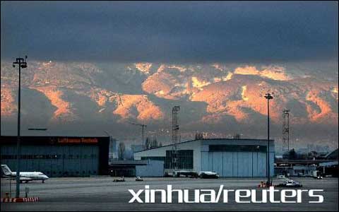 2月2日上午,从保加利亚首都索非亚机场远眺,索非亚南郊呈现“阴阳天”景观。维多沙山上半部分隐没在乌云云层中,下半部分被朝阳照耀,更显维多沙山的秀美。