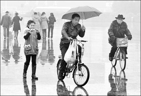 2月2日山西临汾小雨绵绵。(图片来源:山西青年报网站)