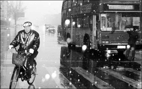 2月2日太原出现降雪。(图片来源:山西青年报网站)
