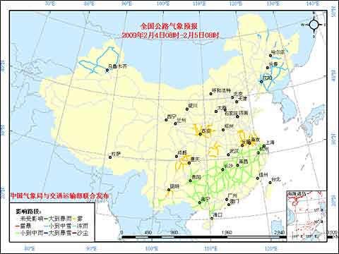 7-9日,西北地区东南部、华北中南部、东北南部、黄淮、江淮、江汉、西南地区东部、江南等地将出现一次降水过程,一般为小雨(雪),其中华北西南部、黄淮西部、汉水流域等地的部分地区有中雨(雪),将给春运带来不便。