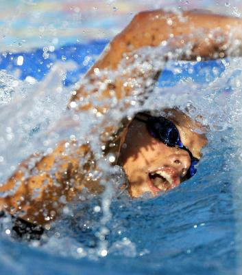 7月24日,法国选手马诺杜在世界游泳锦标赛女子400米自由泳决赛中,以4分06秒44的成绩获得冠军。 新华社记者李岳摄