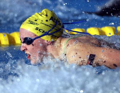 2005年7月25日,澳大利亚选手斯基佩尔在加拿大蒙特利尔举行的第十一届世界游泳锦标赛女子100米蝶泳决赛中,以57秒23的成绩创造了世锦赛的新纪录,并赢得金牌。 新华社记者李岳摄