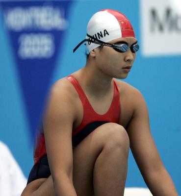 2005年7月27日,中国选手高畅在进行赛前准备。当日,高畅在加拿大蒙特利尔举行的第十一届世界游泳锦标赛女子50米仰泳半决赛中,以28秒31的成绩晋级决赛,并打破该项目的世锦赛纪录。 新华社记者李岳摄