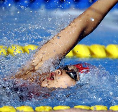 2005年7月28日,中国选手高畅在加拿大蒙特利尔举行的第十一届世界游泳锦标赛女子50米仰泳决赛中,以28秒69的成绩获得亚军,澳大利亚选手鲁尼获得冠军。 新华社记者李岳摄
