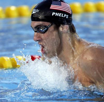 7月28日,美国选手菲尔普斯在加拿大蒙特利尔举行的第十一届世界游泳锦标赛男子200米个人混合泳决赛中,以1分56秒68的成绩获得冠军。这是菲尔普斯在本届世锦赛中获得的第三枚金牌。 新华社记者李岳摄