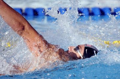 2005年7月29日,美国选手佩尔索在加拿大蒙特利尔举行的第十一届世界游泳锦标赛男子200米仰泳决赛中,以1分54秒66的成绩夺得冠军,并打破了由他自己保持的世界纪录。 新华社记者李岳摄