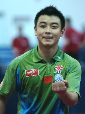 2006年4月23日,中国队球员王皓在德国北部城市不来梅第48届世乒赛比赛场地进行训练。当日,中国队进行了抵达不来梅后的首次训练。第48届世乒赛团体赛将于4月24日至5月1日举行。 新华社记者吴晓凌摄