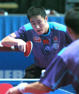 2006年4月23日,中国队球员王励勤在德国北部城市不来梅第48届世乒赛比赛场地进行训练。当日,中国队进行了抵达不来梅后的首次训练。第48届世乒赛团体赛将于4月24日至5月1日举行。 新华社记者吴晓凌摄