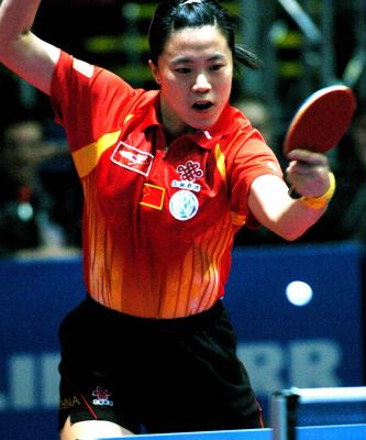 4月24日,中国女队球员王楠在比赛中反手回球。当日,第48届世乒赛团体赛在德国不来梅揭幕,中国女队在首场比赛中以3比0战胜同在A组的捷克女队。 新华社记者吴晓凌摄