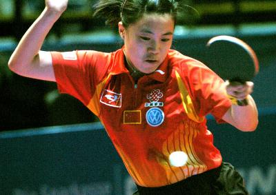 4月24日,中国女队球员王楠在比赛中正手回球。当日,第48届世乒赛团体赛在德国不来梅揭幕,中国女队在首场比赛中以3比0战胜同在A组的捷克女队。 新华社记者吴晓凌摄
