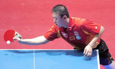 4月24日,中国男队球员马琳在比赛中正手回球。当日,第48届世乒赛团体赛在德国不来梅揭幕,中国男队在首场比赛中以3比0战胜同在A组的罗马尼亚男队。 新华社记者吴晓凌摄