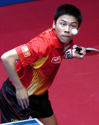 4月24日,中国男队球员陈玘在比赛中发球。当日,第48届世乒赛团体赛在德国不来梅揭幕,中国男队在首场比赛中以3比0战胜同在A组的罗马尼亚男队。 新华社记者吴晓凌摄