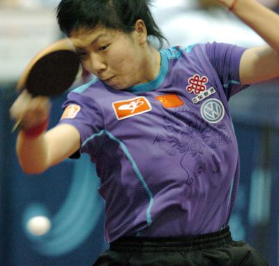2006年4月25日,中国选手李晓霞在比赛中以3比0战胜对手。当日,在德国北部城市不来梅举行的第48届世乒赛女子团体A组第二轮比赛中,中国队以3比0战胜塞黑队。 新华社记者吴晓凌摄