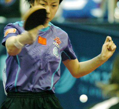 4月25日,中国队选手张怡宁以3比1战胜白俄罗斯队选手韦·帕夫洛维奇。当日,在德国不来梅举行的第48届世乒赛女子团体A组第三轮的比赛中,中国队以3比0战胜白俄罗斯队,取得小组赛三连胜。 新华社记者吴晓凌摄