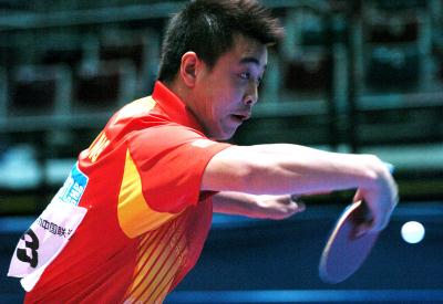 4月25日,中国选手王皓在比赛中以3比0战胜对手。当日,在德国北部城市不来梅举行的第48届世乒赛男子团体A组第二轮比赛中,中国队以3比0战胜荷兰队。 新华社记者吴晓凌摄