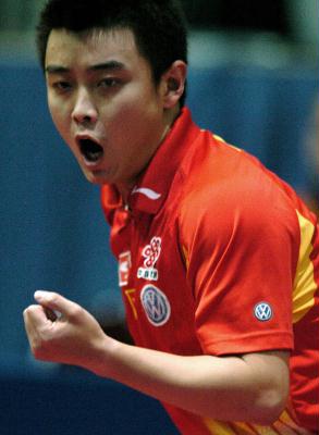 4月25日,中国选手王皓在比赛中以3比0战胜对手。当日,在德国北部城市不来梅举行的第48届世乒赛男子团体A组第二轮比赛中,中国队以3比0战胜荷兰队。 新华社记者吴晓凌摄
