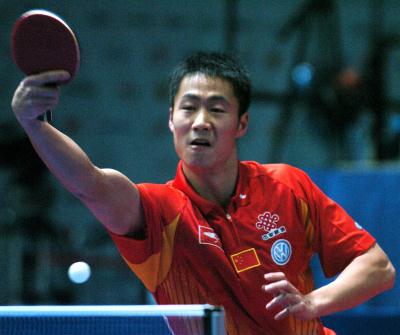 4月25日,中国选手王励勤在比赛中以3比0战胜对手。当日,在德国北部城市不来梅举行的第48届世乒赛男子团体A组第二轮比赛中,中国队以3比0战胜荷兰队。 新华社记者吴晓凌摄