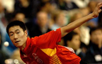 新华社消息:4月28日,中国队选手王励勤以3比0战胜意大利选手波波奇卡。 当日,在德国不来梅举行的第48届世乒赛男子团体A组第五轮的比赛中,中国队以3比0战胜意大利队。 新华社记者 吴晓凌摄