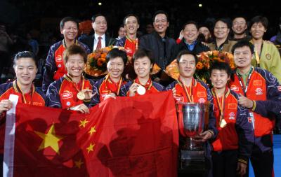 4月30日,中国女队在颁奖仪式上。当日,在德国不来梅举行的第48届世乒赛女子团体决赛中,中国队以3比1战胜中国香港队,夺得冠军。 新华社记者吴晓凌摄