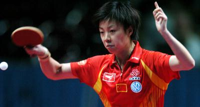4月30日,中国队选手张怡宁以3比0战胜中国香港队选手帖娅娜。当日,在德国不来梅举行的第48届世乒赛女子团体决赛中,中国队以3比1战胜中国香港队,夺得冠军。 新华社记者吴晓凌摄