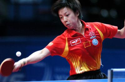 4月30日,中国队选手张怡宁以3比0战胜中国香港队选手帖娅娜。当日,在德国不来梅举行的第48届世乒赛女子团体决赛中,中国队以3比1战胜中国香港队,夺得冠军。 新华社记者吴晓凌摄
