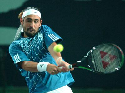 2006年9月16日,塞浦路斯选手巴格达蒂斯在比赛中。当日,巴格达蒂斯在北京举行的2006中国网球公开赛男单半决赛中,以2比1战胜泰国选手斯里查潘,晋级决赛。 新华社记者罗晓光摄