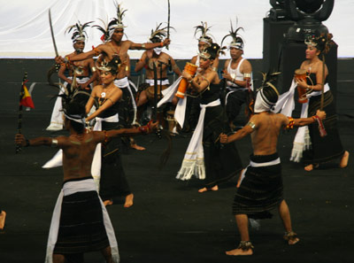 葡语系运动会开幕式预演:东帝汶传统歌舞团。CCTV.com前方记者郑红伟、王晓遐摄