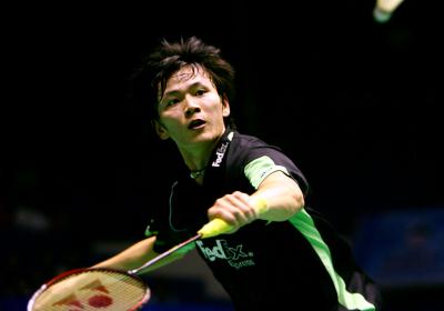 2006年10月17日,中国选手鲍春来在男单首轮比赛中以2比0战胜中国台北选手谢裕兴,顺利晋级。当日,2006年中国羽毛球公开赛在广州开战。 新华社记者韩岩摄