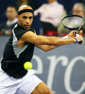 11月15日,美国选手布雷克在比赛中回球。当日,在上海进行的2006年网球大师杯赛中,布雷克对阵俄罗斯选手达维登科。 新华社记者毕明明摄